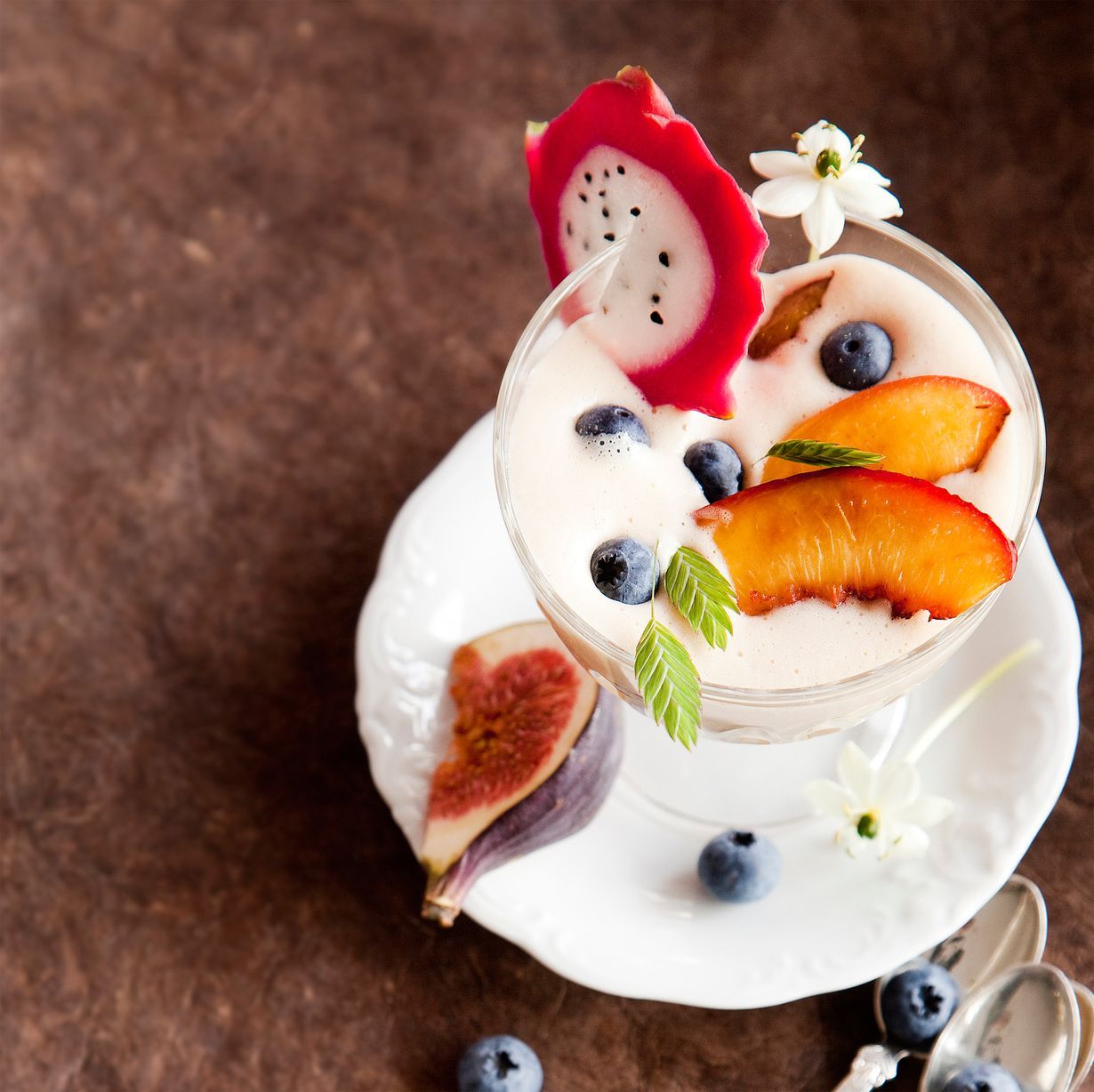 Zabaglione-vaahto ja paistetut hedelmät