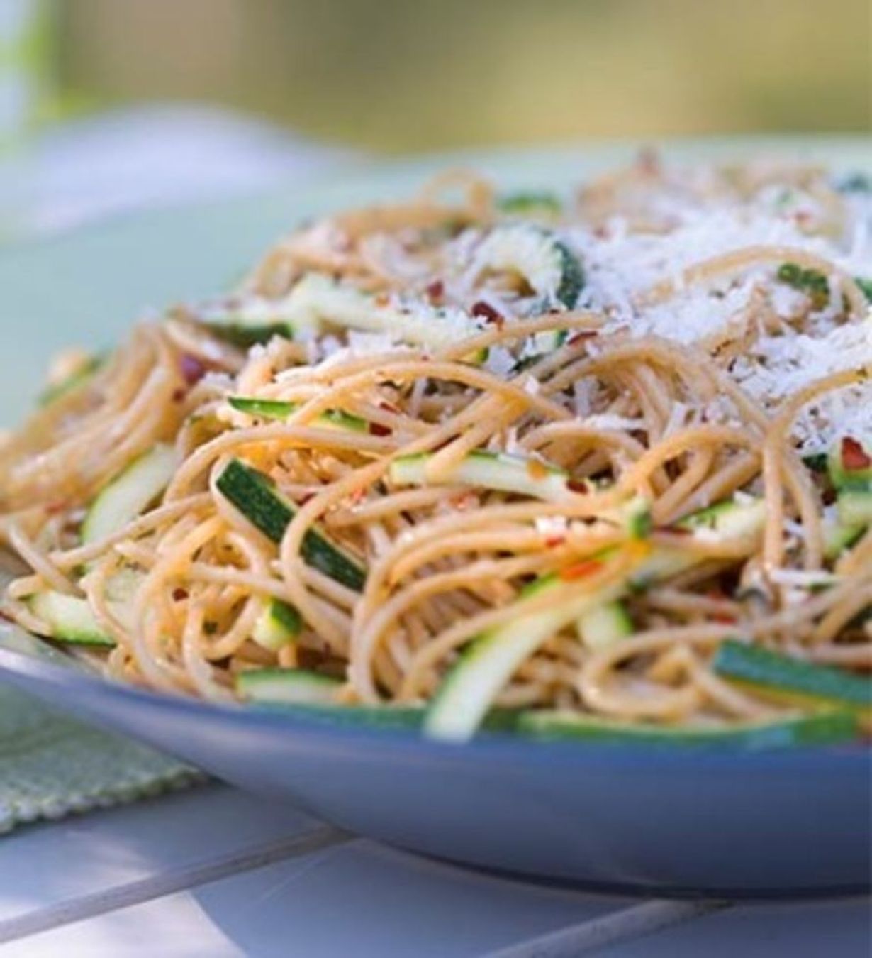 - Jatka kypsentämistä 5–10 minuuttia. Nosta pannu liedeltä ja lisää joukkoon ruohosipulisilppu. Sekoita. Kaada kesäkurpitsaseos spagetin joukkoon ja sekoita hyvin. Mausta suolalla ja pippurilla oman maun mukaan. Ripottele kunkin annoksen päälle parmesaania.