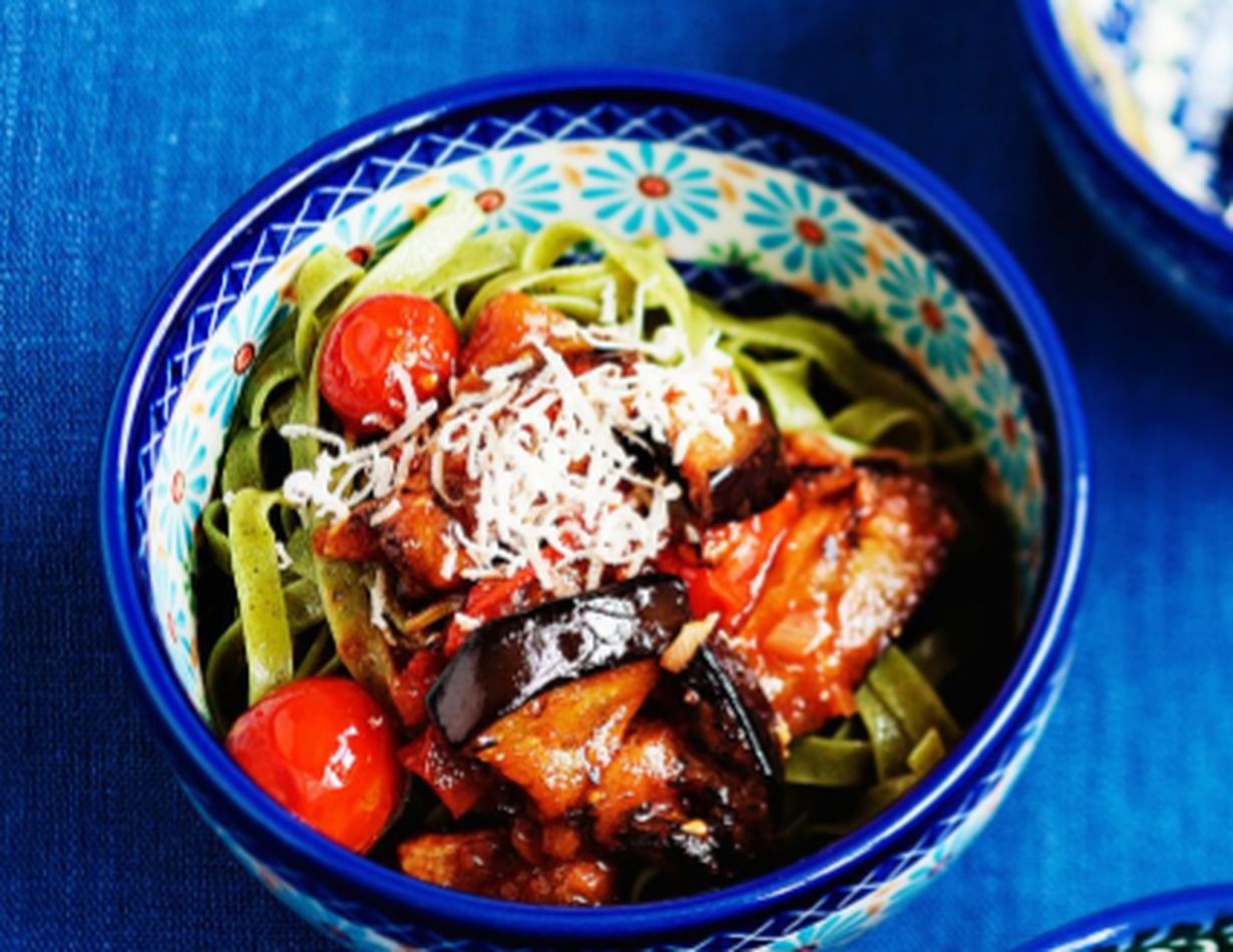 Balsamicolla maustettu munakoisopasta maistuu muillekin kuin kasvissyöjille.