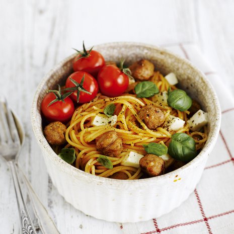 - Keitä pasta ohjeen mukaan suolalla maustetussa vedessä.