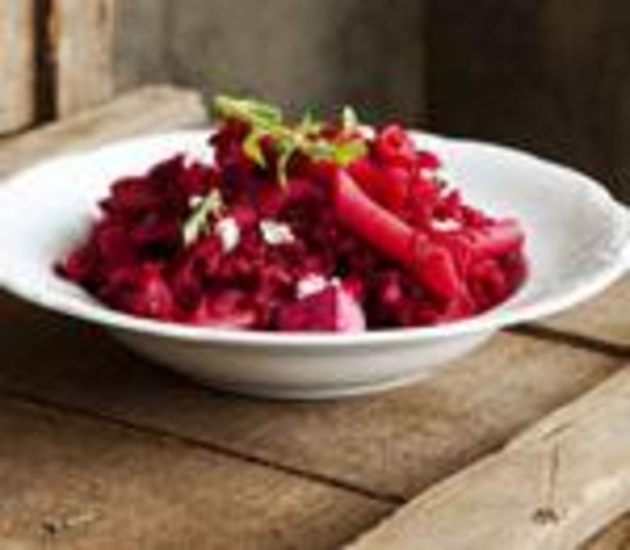 - Keitä pasta pakkauksen ohjeen mukaan kypsäksi. Kuori tällä välin punajuuret, sipuli ja valkosipulinkynnet. Raasta ne karkeaksi raasteeksi. Kuutioi tofu. Kuullota raastetta noin 5 minuuttia pannulla öljyssä.