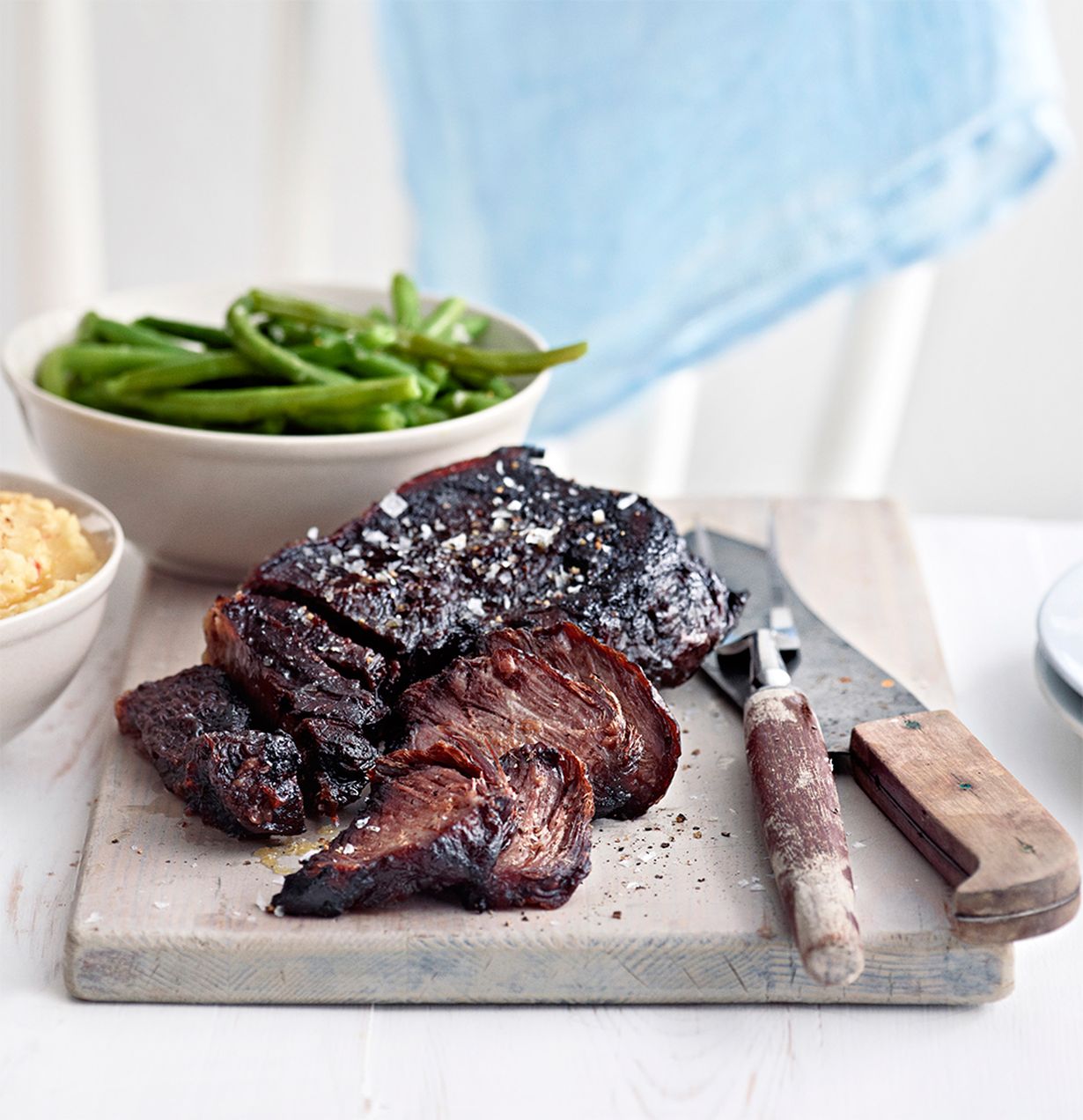 Kaada liemi pois. Viipaloi liha ja tarjoa juuresmuusin, sinapin ja keitettyjen kasvisten kera.