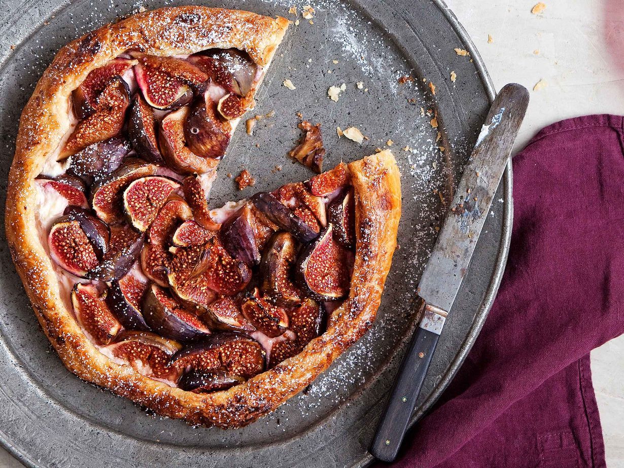 Ranskalaisen galetten eli rustiikkisen maalaispiiraan täytteeseen sujahtaa viikunaa.