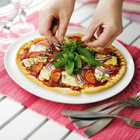 - Paista pizzoja 250-asteisen uunin keskitasolla noin 15 minuuttia. Pikkupizzat saattavat kypsyä 10 minuutissa.