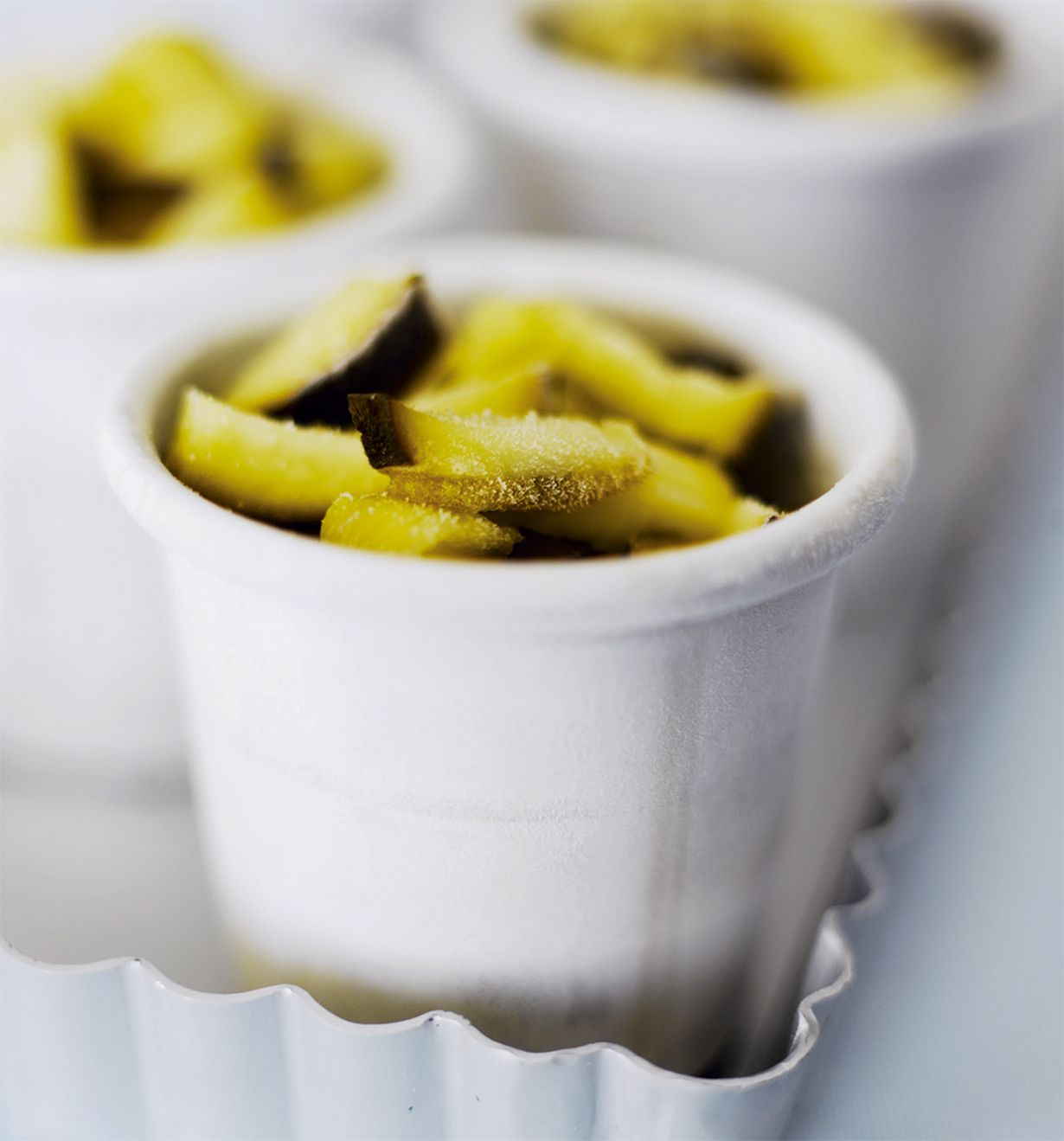 Huuhtele ja suikaloi kesäkurpitsat. Voit halutessasi kuoria ne.