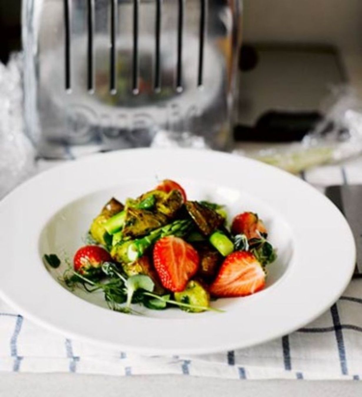 - Tee yrttiöljy. Laita yrtit, öljy ja viinietikka kulhoon. Aja sauvasekoittimella tasaiseksi tahnaksi. Yhdistä pesty salaatti ja kastike. Lisää joukkoon muut aineet. Koristele halutessasi syötävillä kukilla.