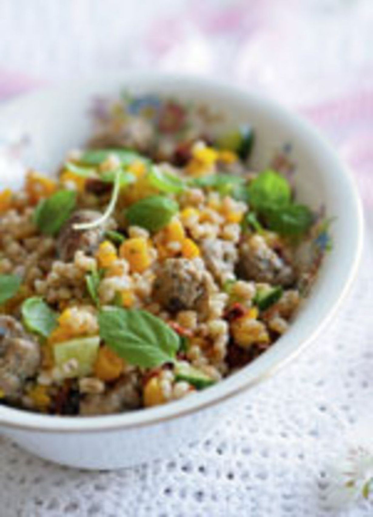 - Valmista lammaspyörykät ja lisää salaattiin. Salaatin voi tarjota myös sellaisenaan, muiden ruokien lisukkeena.