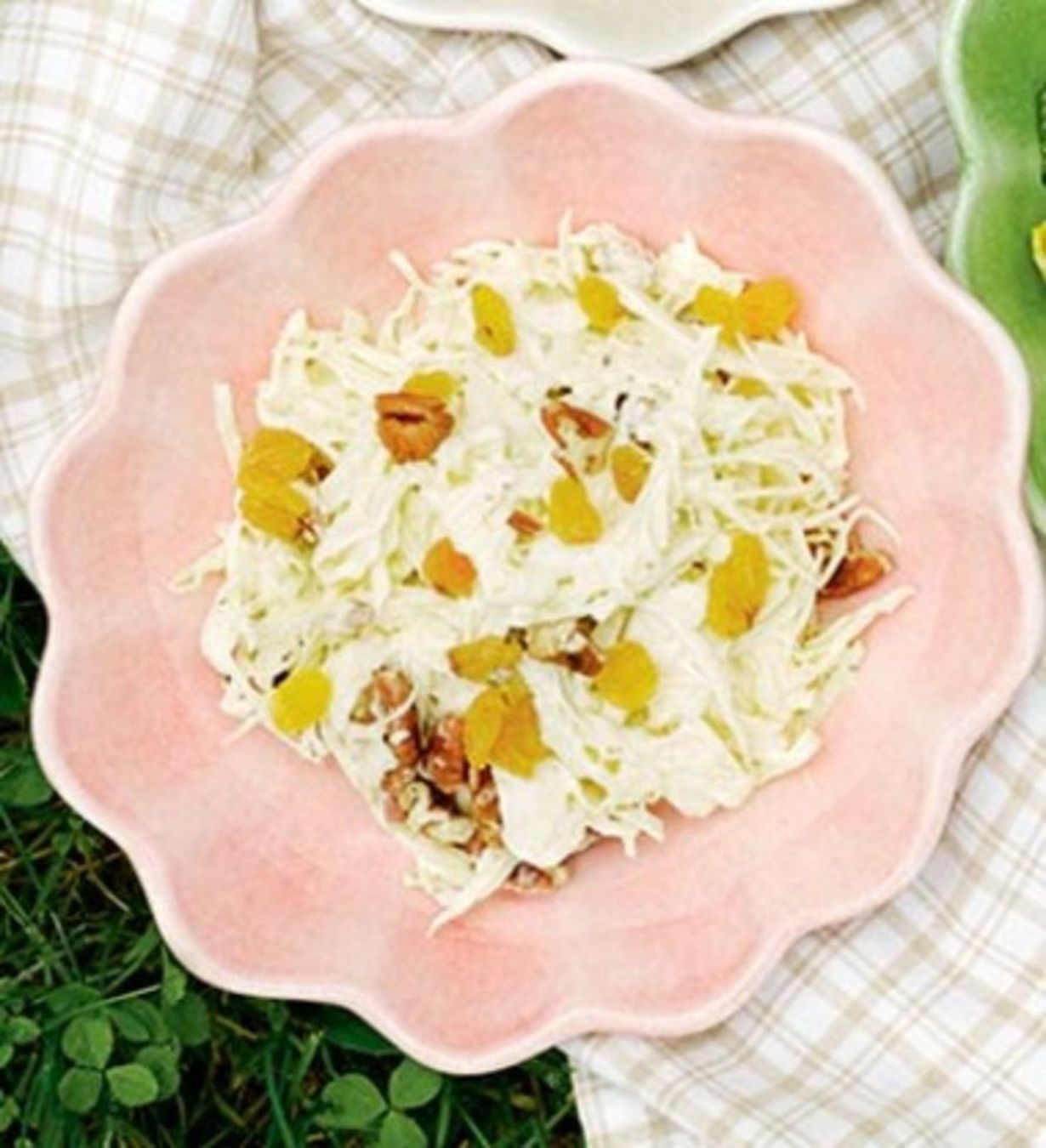 - Kuori ja hienonna valkosipulinkynsi. Sekoita joukkoon majoneesi, kermaviili ja etikka. Lisää tarvittaessa ripaus sokeria. Yhdistä kastike ja kaaliseos.