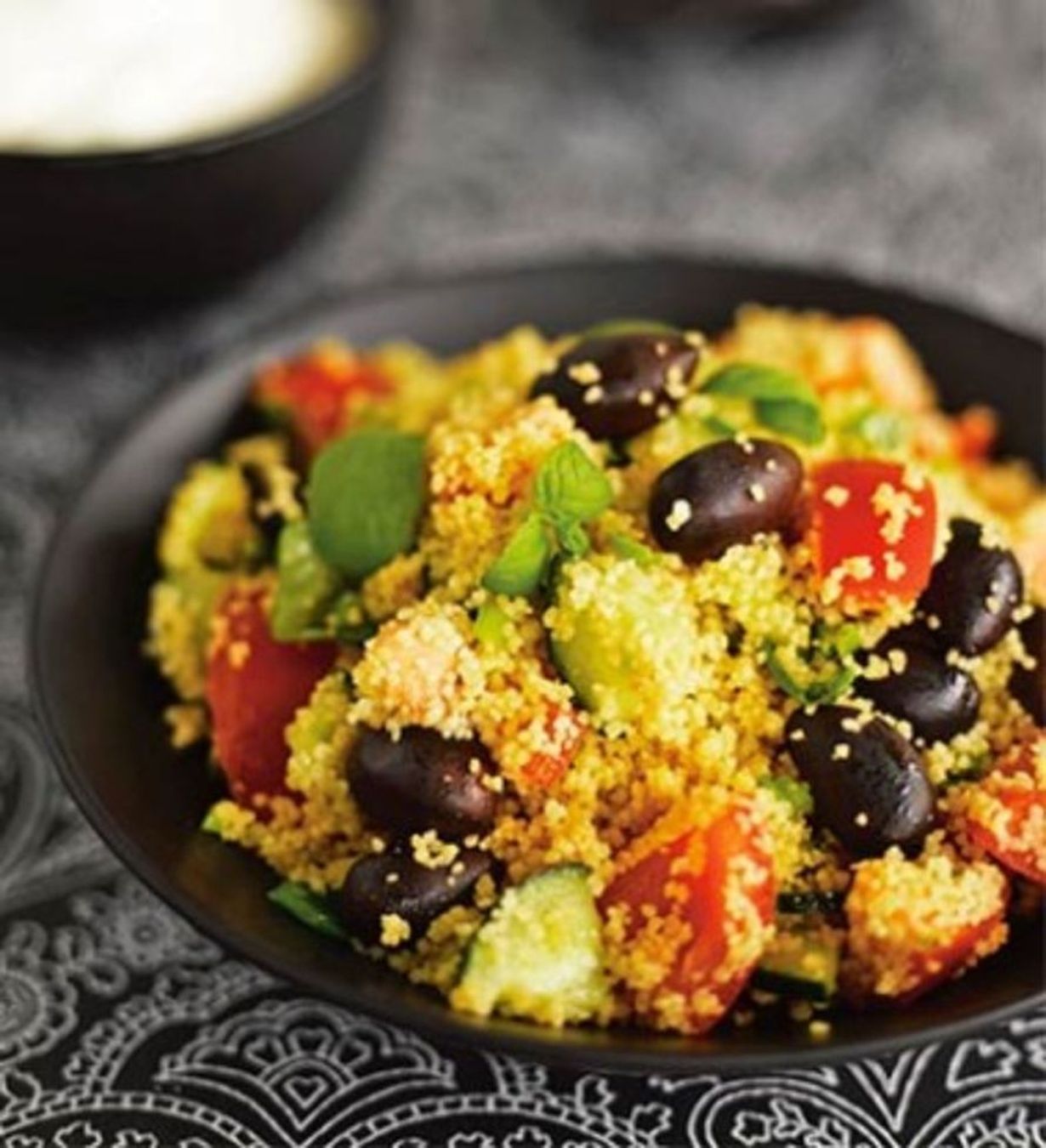 - Kiehauta vesi. Lisää couscous ja öljy. Alenna lämpöä ja anna couscousin kypsyä nelisen minuuttia välillä sekoitellen.