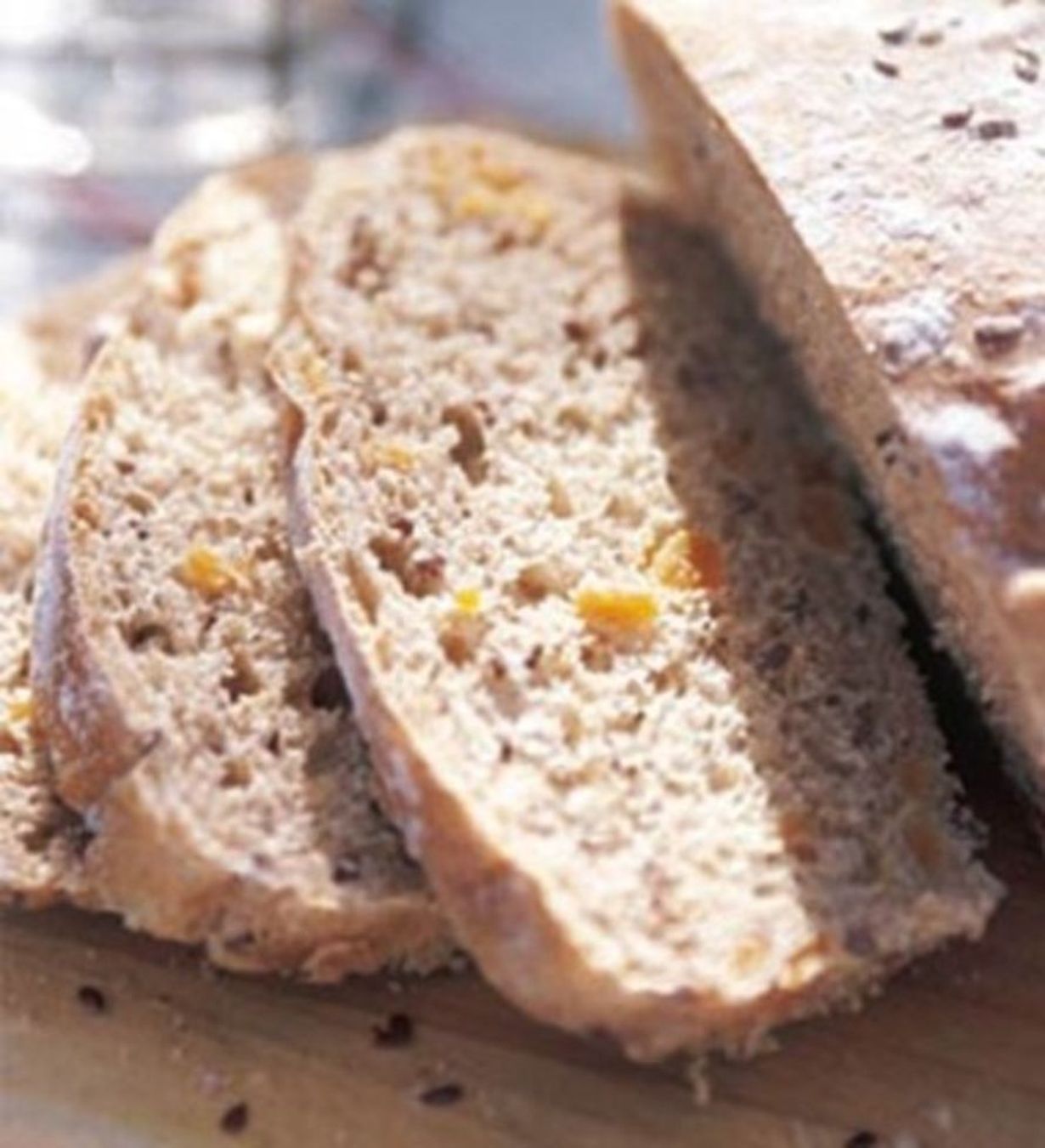 - Liota kädenlämpöiseen nesteeseen hiiva. Lisää nesteeseen suola, siirappi, pellavansiemenet ja aprikoosit sekä raastettu omena.