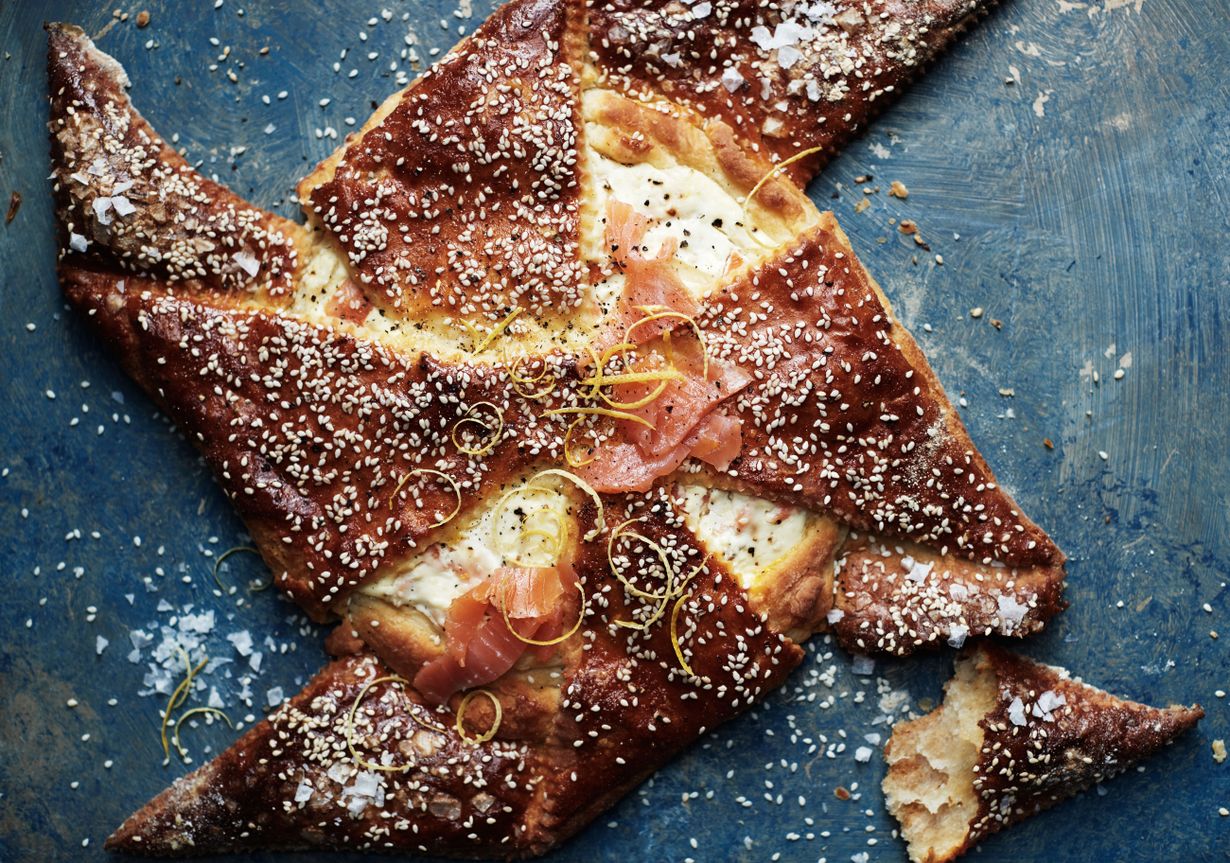 - Voitele sakarat ja joulutortun keskiosa kevyesti keltuaisella. Ripottele päälle seesaminsiemeniä ja mustapippuria. Ripottele sakaroihin sormisuolaa.