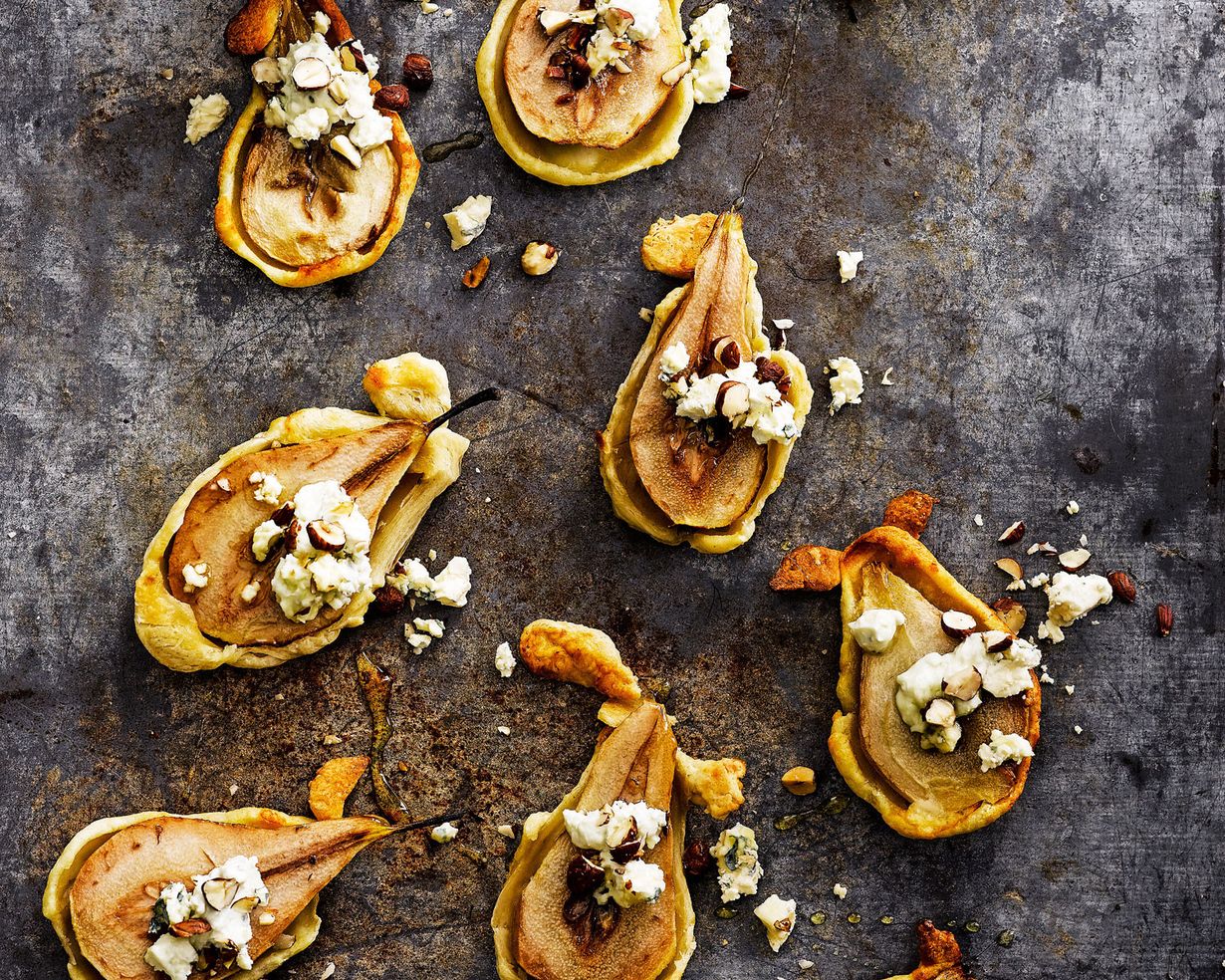 Kielenvieviin piiraisiin tarvitset vain pakastetaikinaa, päärynöitä, mascarponea ja sinihomejuustoa.