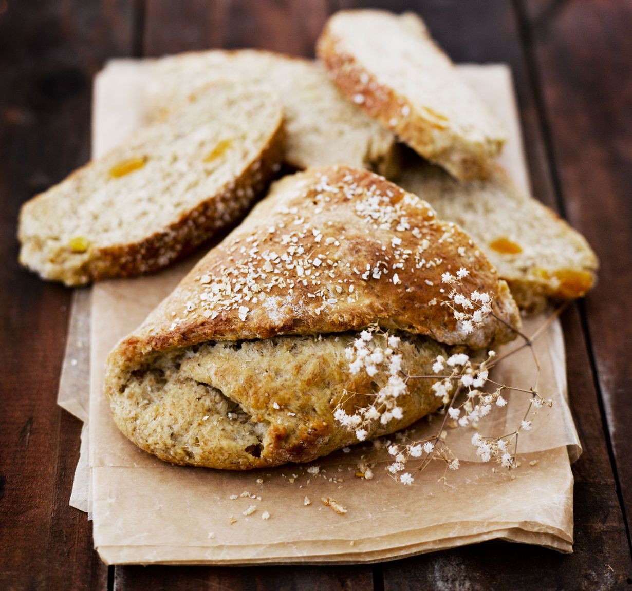 Aprikoosisattumat tekevät tästä leivästä mehevän.