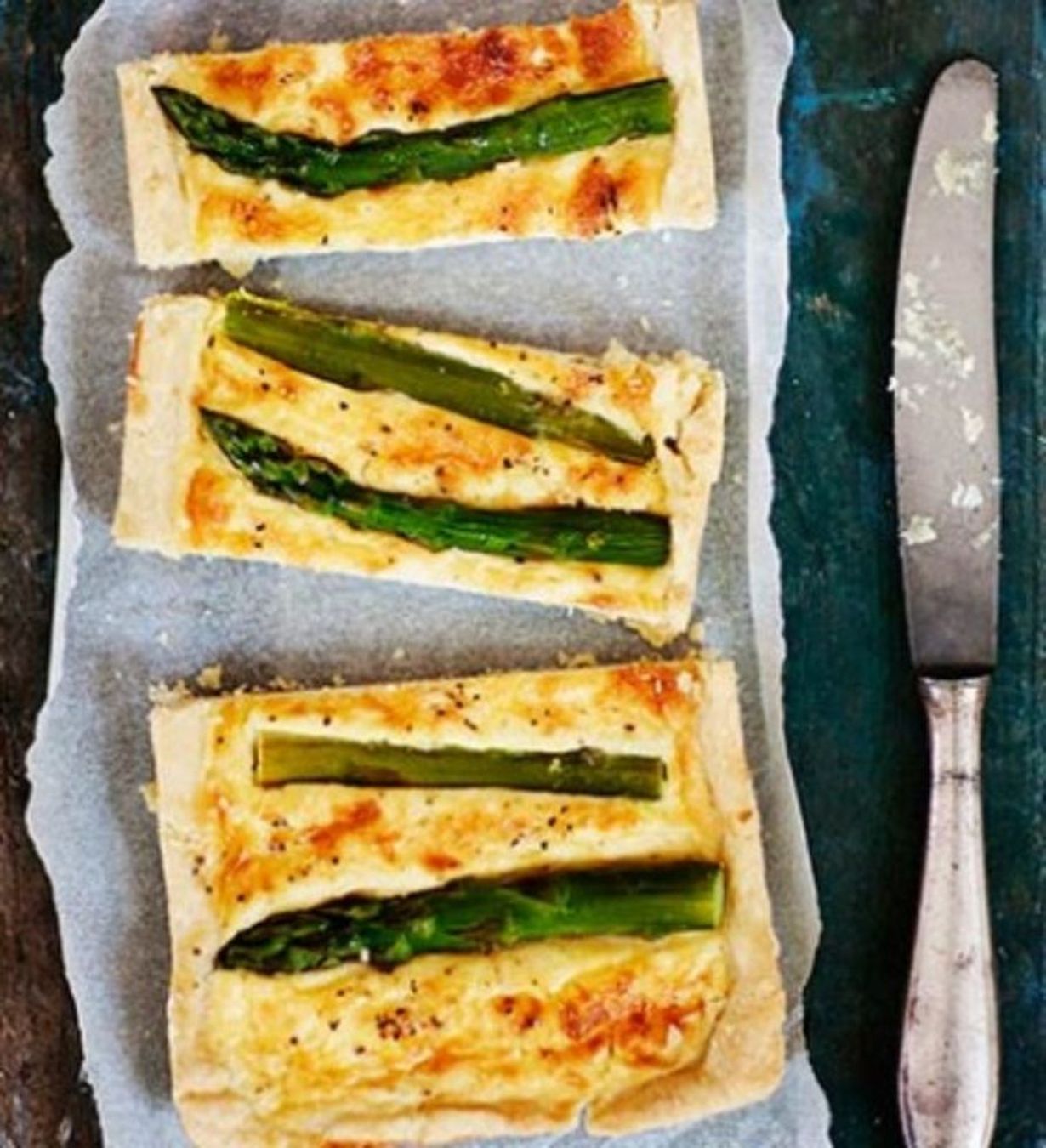 - Esikypsennä taikinapohjaa keskitasolla 200 asteessa noin 10 minuuttia. Nosta vuoka uunista, kumoa päälle täyte ja nostele pinnalle parsanuput. Paista noin 30 minuuttia tai kunnes taikina on kypsää ja täyte kiinteää ja saanut kauniin paistovärin.