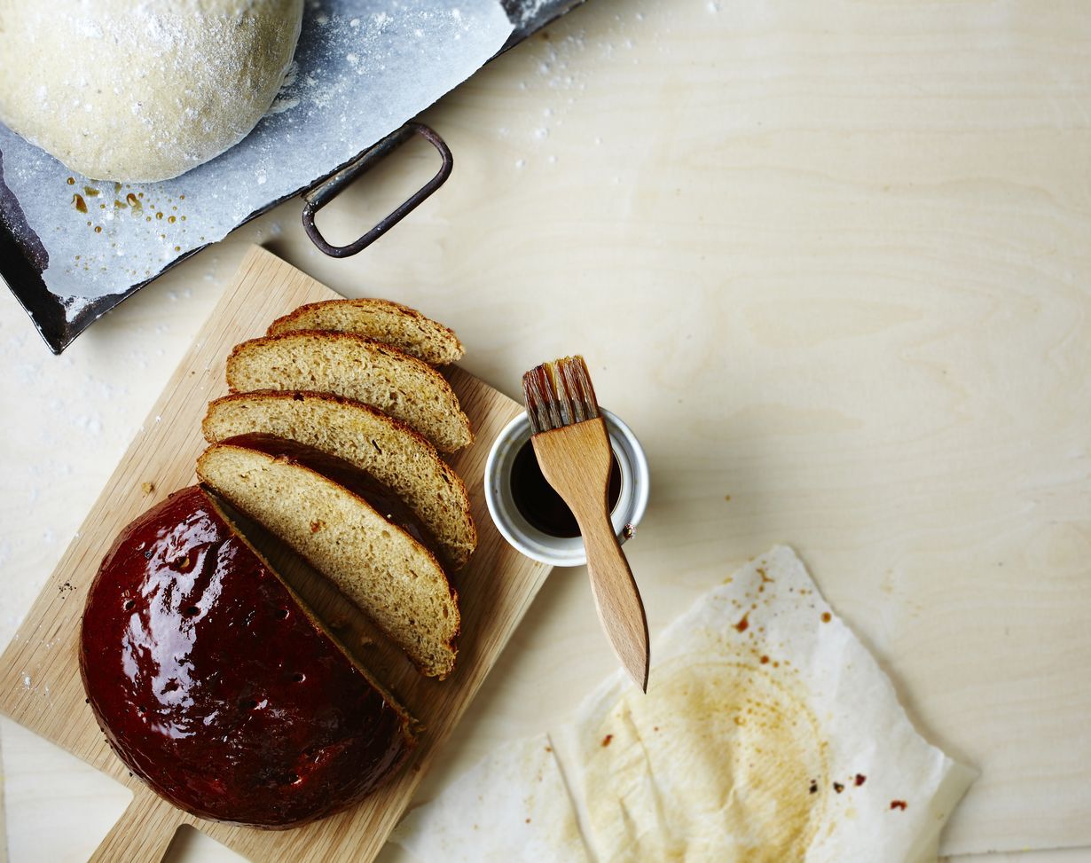 Siirappi pitää sutia leivän päälle juuri oikeaan aikaan. Tee ensimmäinen sively, kun limppu on paistunut noin 20 minuuttia ja toista muutaman kerran paiston aikana.