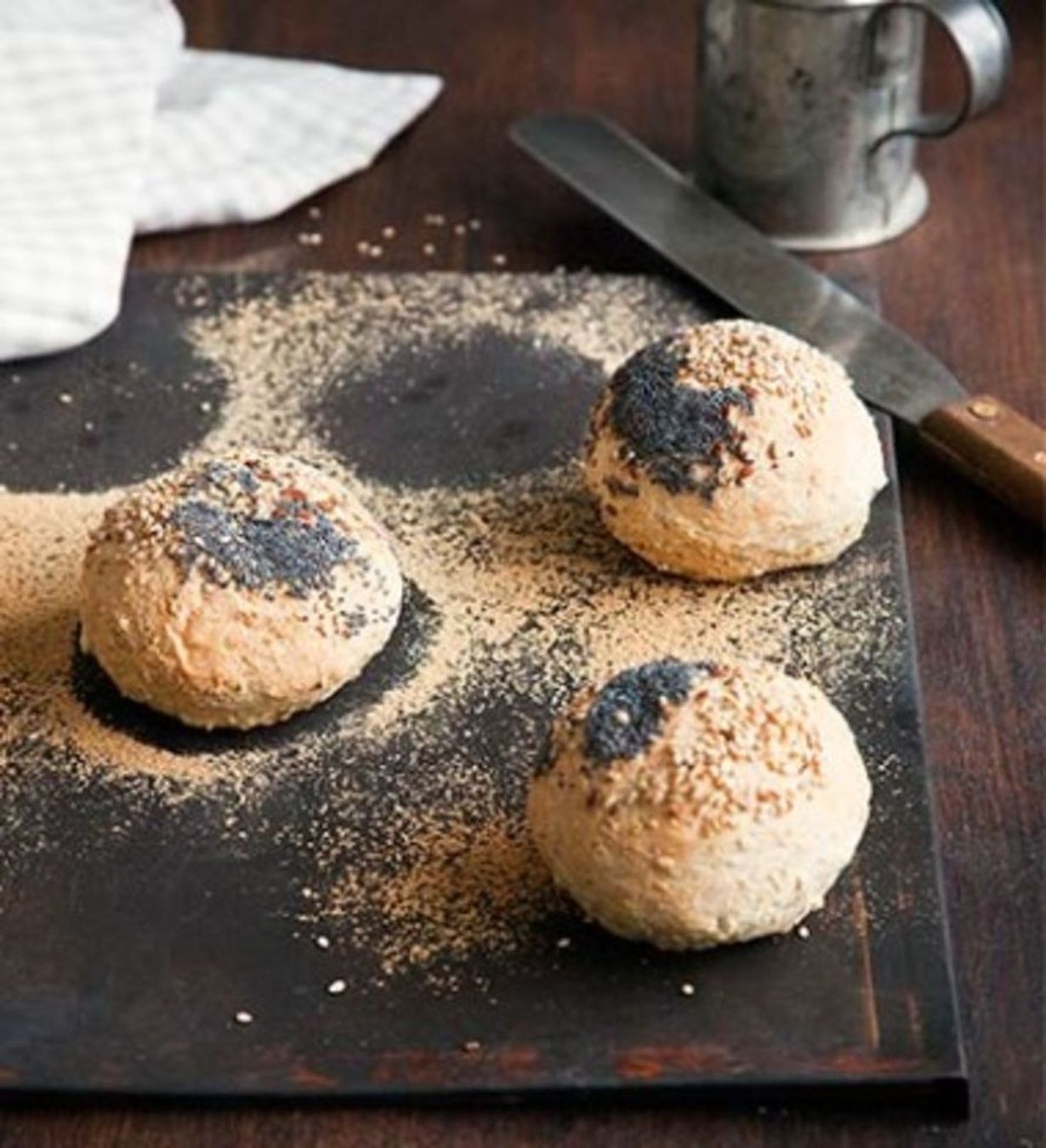 - Laita siemeniä lautaselle. Kasta tai pyörittele sämpylöiden pinta siemenissä. Aseta sämpylät leivinpaperoiduille pelleille.