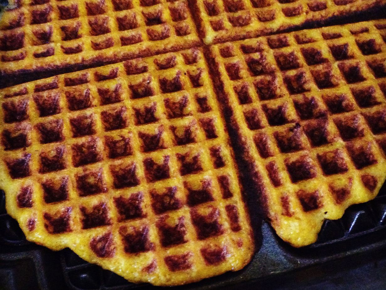 Porkkanasoseesta paistetut vohvelit ovat päältä rapeita ja sisältä pehmeitä.