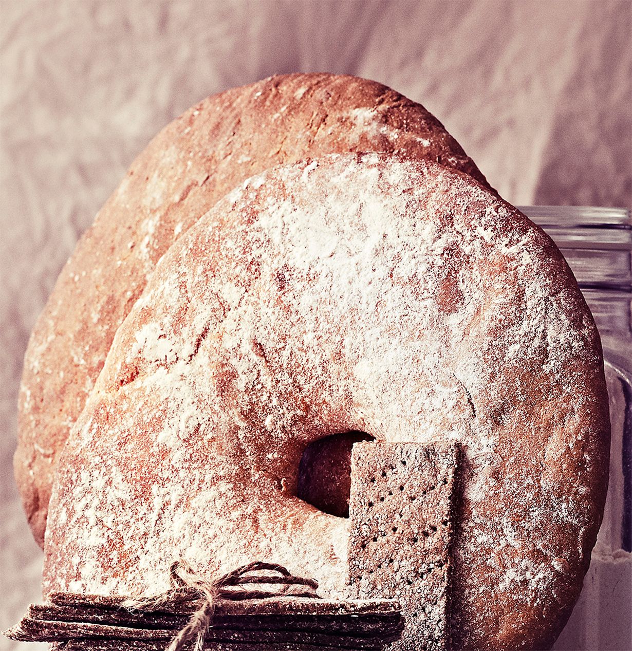 - Kaada taikina jauhotetulle työpöydälle ja jaa kahteen osaan. Leivo taikinasta kaksi leipää.