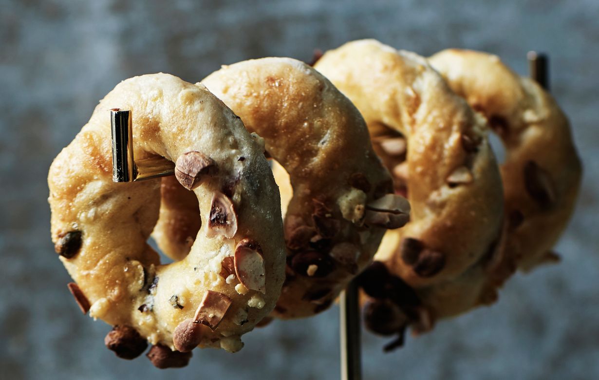 - Sivele kranssit munalla. Ripottele päälle pähkinöitä ja sinihomejuustoa.