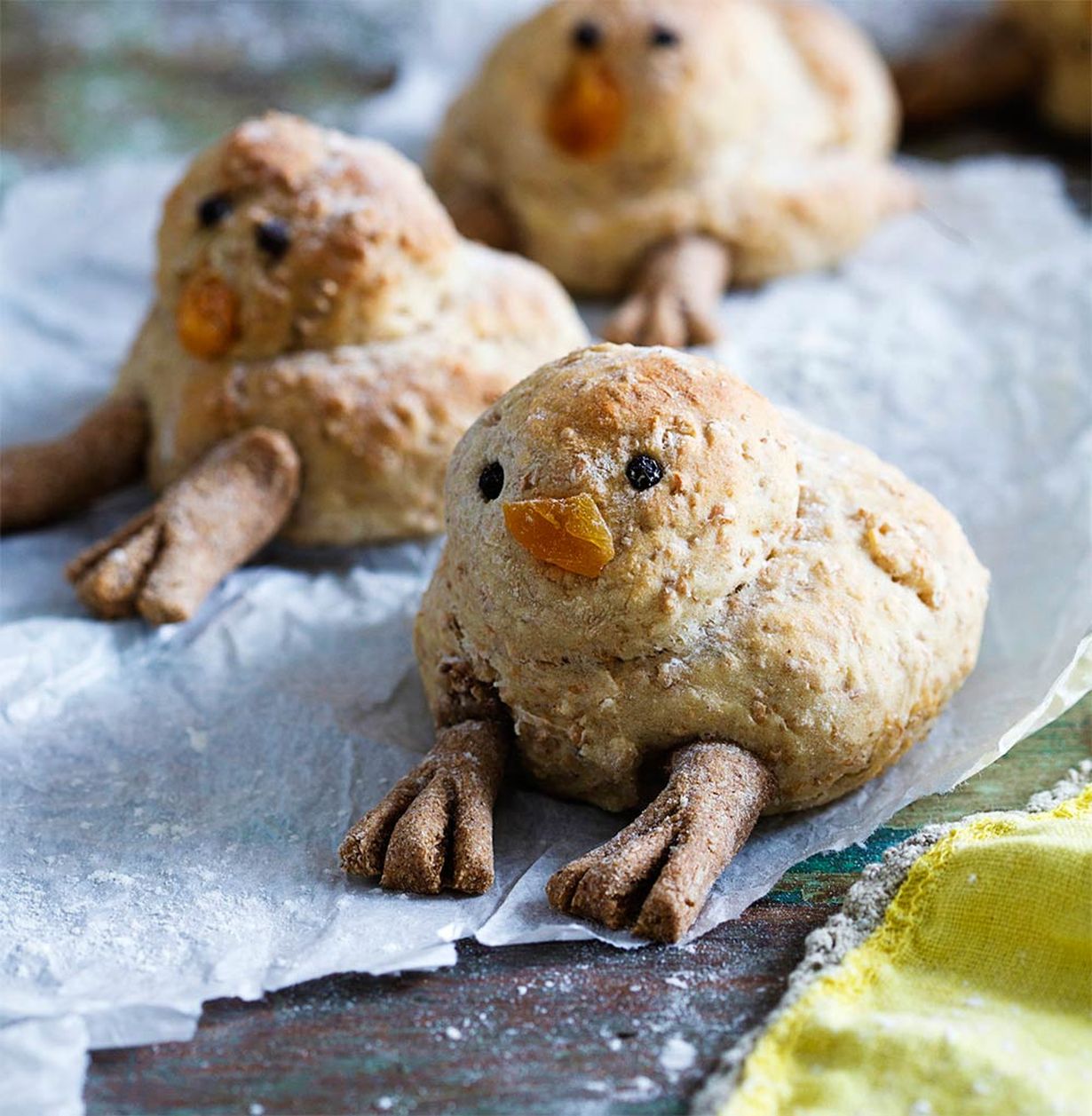 Leikkaa kuivatuista aprikooseista nokat. Paina ne paikoilleen vasta paistamisen loppuvaiheessa, sillä muuten ne tummuvat uunissa.