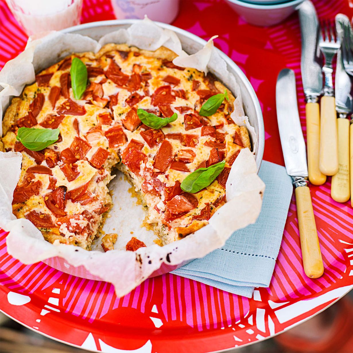 Tomaattipiirakka on kevyt iltapala.