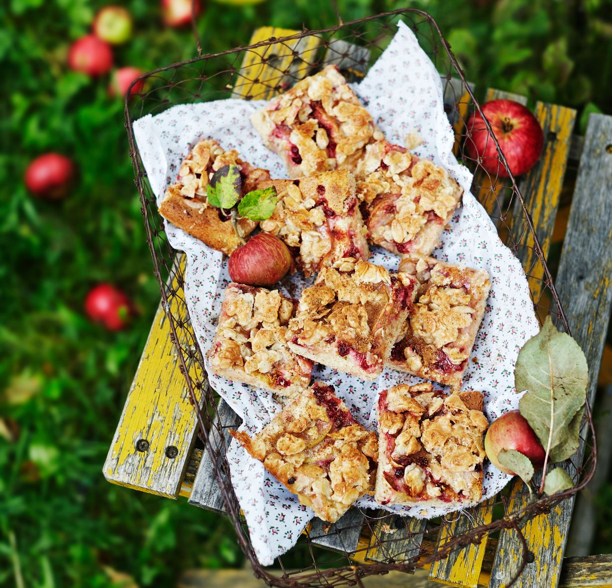 - Viipaloi omenat taikinapohjalle. Ripottele puolukat ja kaneli omenoiden päälle. Paista piirakkaa 200-asteisessa uunissa 20 minuuttia.